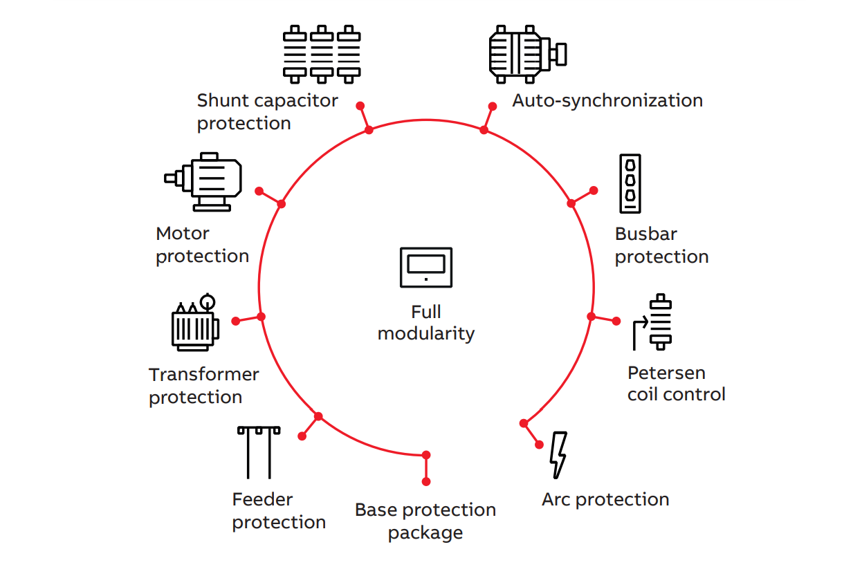 包含饋線保護、電壓保護、馬達保護、電容器保護、變壓器差動保護、線路差動保護、發電機保護等